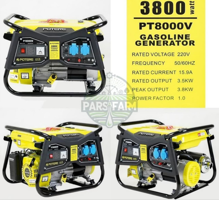 موتور برق بنزینی 3 کیلو وات پوتر مدل PT8000V از جمله موتور برق های تک فاز با کیفیت و با قیمت بسیار مناسب است. نوع سوخت مصرفی این مدل بنزین و سیستم استارت به صورت هندلی است.